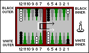 THE BACKGAMMON BOARD Here's a new mnemonic rhyme by Peter Hobbs that tells how to set up the 15 white and 15 black counters on a backgammon board correctly: